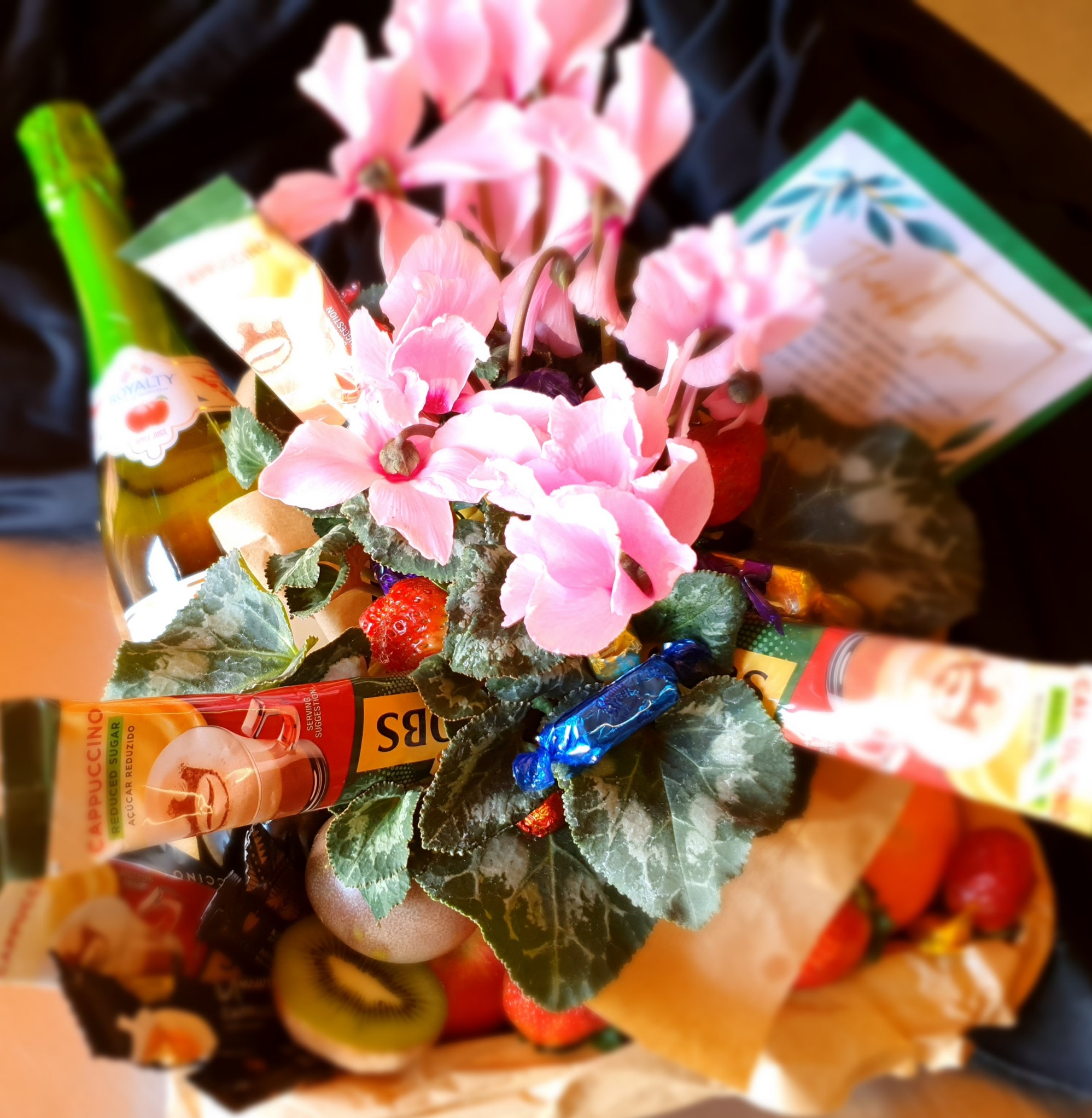 Gift Basket/Hamper (Fruit, Non-Alcoholic Wine, Plant/Flowers, Chocolates, Cappuccino Sachets)