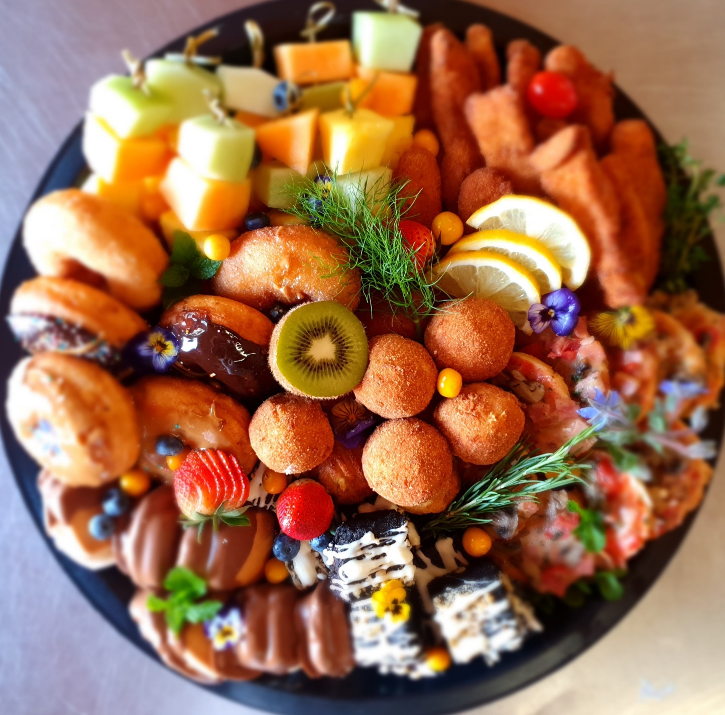 - 8 X mini doughnuts garnished with Fruits/Berries